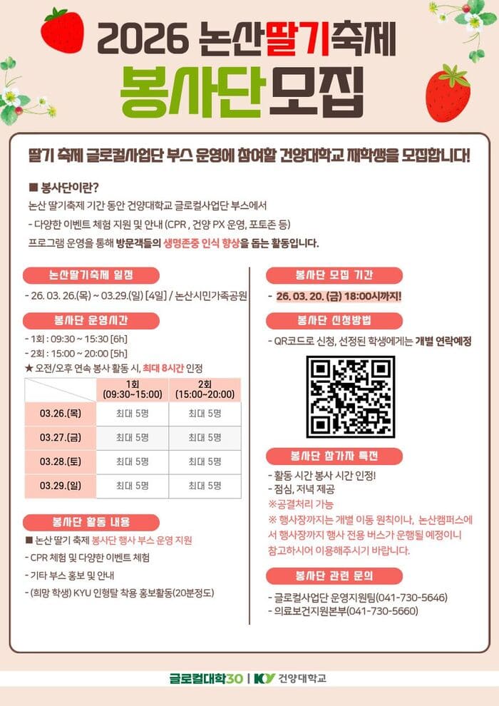 2026 논산딸기축제 봉사단 모집안내 (2026.03.26.~03.29.) 글의 상세내용